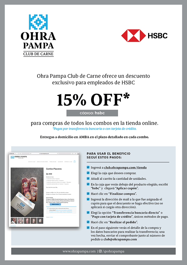 Ohra Pampa nos brinda un 15% de descuento en todos sus cortes vacunos de calidad, envasados al vacío en origen.