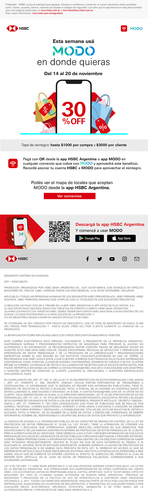 Disfruta de los descuentos que ofrece MODO pagando con QR con tarjetas HSBC