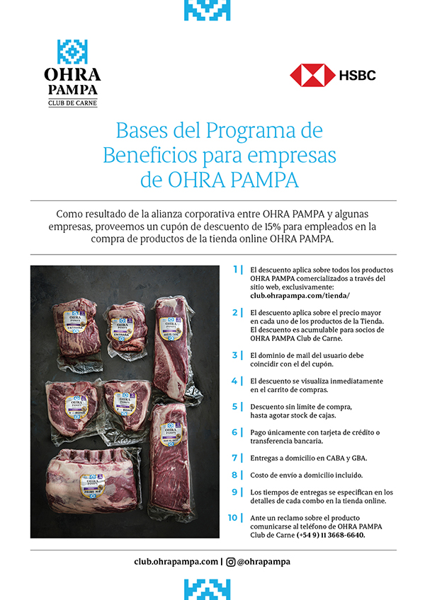 Ohra Pampa nos brinda un 15% de descuento en todos sus cortes vacunos de calidad, envasados al vacío en origen.